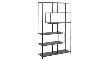 Die asymmetrische Anordnung der Böden verleihen dem Standregal ein außergewöhnliches Aussehen. Auf vier Regalböden haben Sie genug Stauraum in Ihrem Arbeitszimmer für Unterlagen und Bücher oder für Bilderrahmen und andere Dekorationen in Ihrem Wohnzimmer.