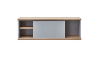 Funktional überzeugt das erstklassig verarbeitete Regal mit einem großen Fach rechts sowie einem durch einen Einlegeboden unterteilten Bereich linksseitig. Die praktische Schiebetür lässt sich komplett von links nach rechts durchschieben. Es steht demnach offener und halbgeschlossener Stauraum für verschiedene Gegenstände zur Verfügung, etwa Spielsachen, Bücher und Zeitschriften, Fotoalben, CDs, DVDs und Blu-Rays oder andere Utensilien, die entweder vor Licht und Staub geschützt oder dekorativ sichtbar aufbewahrt werden sollen. Auf ca. 86 x 29 x 20 cm (BxHxL) belaufen sich die Maße des praktischen Regalelements.