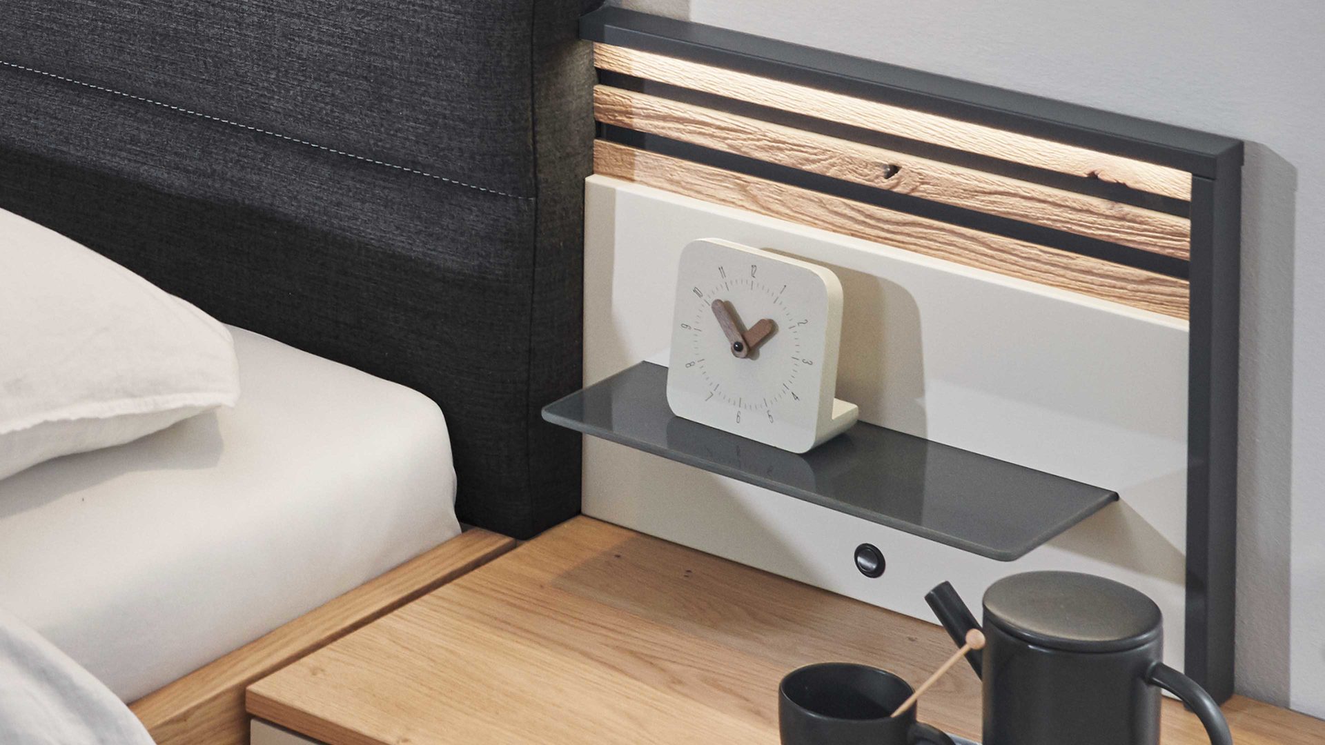Gestalten Sie Ihr Schlafzimmer ganz nach Ihren individuellen Vorstellungen und setzen Sie mit dem Paneelaufsatz der C. DISSELKAMP Schlafzimmerserie Cabrillo ein stilvolles Highlight und ergänzen Sie den Rückwand-Aufsatz mit LED-Beleuchtung.