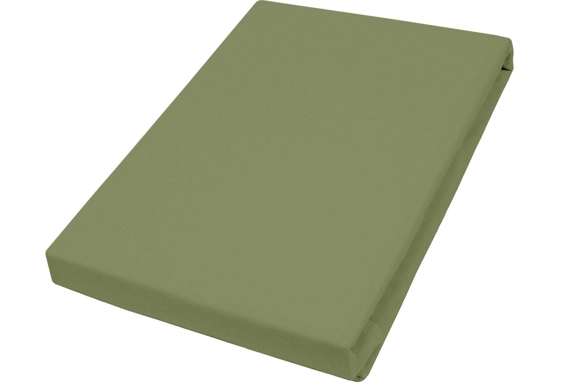 Spannbettlaken H. g. hahn haustextilien® aus Stoff in Grün HAHN Satin-Spannbettlaken khakifarbener Baumwollsatin - ca. 190 x 200 cm