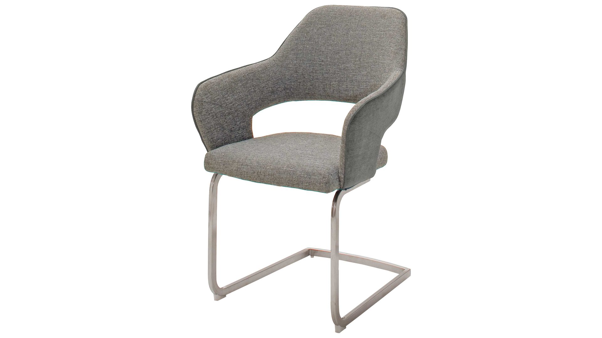 Als Basis fungiert ein gebürstetes Edelstahl-Kantrohrgestell. Es gewährleistet die nötige Robustheit und Stabilität. Die Außenflächen sind mit melangefarbenem Feingewebe, die Innenflächen mit Flachgewebe im Farbton Melange bezogen. Durch die klassisch-elegante Farb- und Materialgestaltung lässt sich der Stuhl wunderbar mit den verschiedensten Einrichtungsstilen kombinieren.