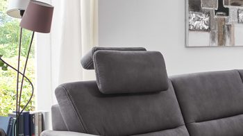 Die Premium-Kopfstütze PKS fungiert als Mehrpreis-Zubehör für die Sofas mit grauem Mikrofaserbezug aus dem Modulmaster Programm MM-ZE1049.