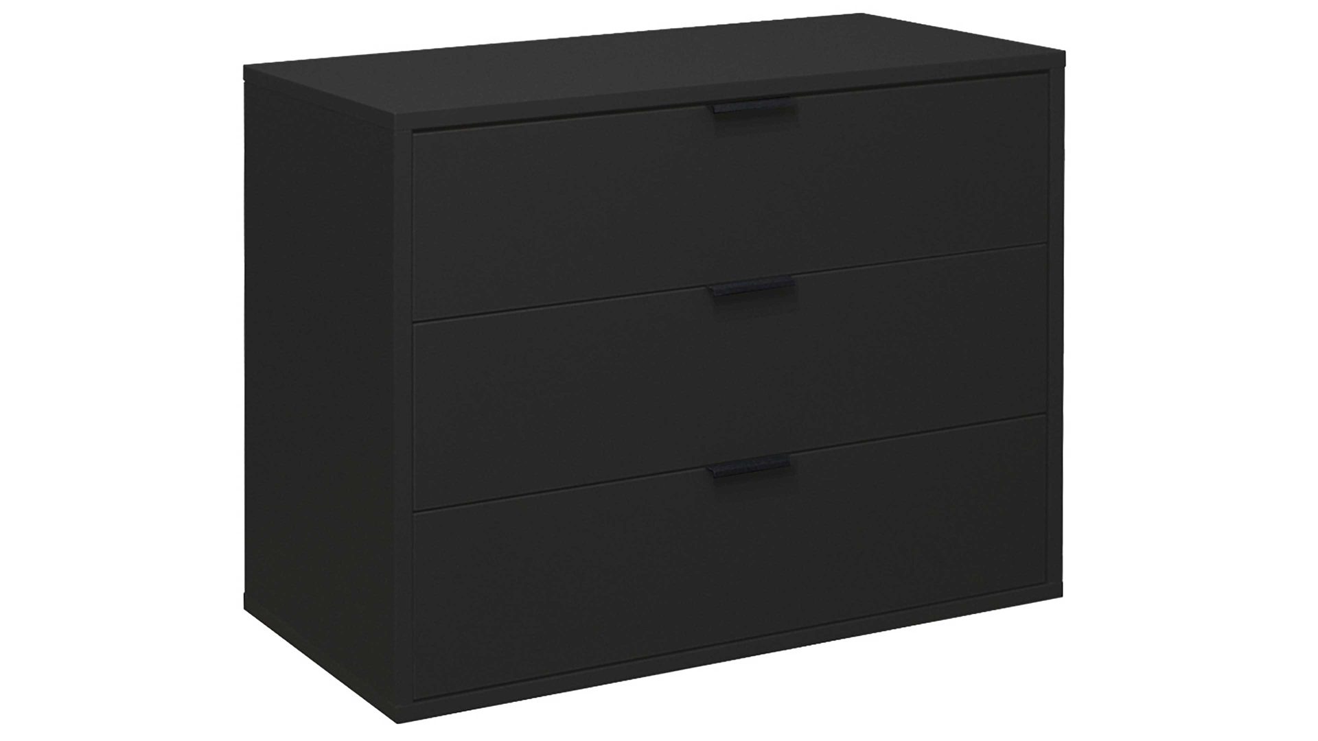 Mit ihren anthrazitfarbenen Mattlackoberflächen verkörpert die Schubladenkommode Bonnie moderne Eleganz. Schwarze Metallgriffe und praktisch höhenverstellbare Möbelgleiter runden das stilvolle Design harmonisch ab. Zu den qualitativen Höhepunkten gehören überdies die widerstandsfähigen abgerundeten Dickkanten.