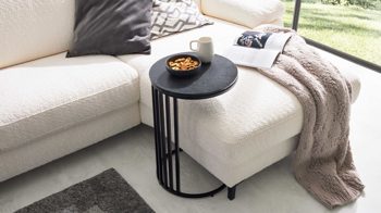 Design mit Charakter: Der Beistelltisch ET069TI aus der Interliving Couchtisch Serie 6220 verbindet eine titanfarbene Keramik-Tischplatte mit einem mattschwarz lackierten Stahlgestell. Die markante Kombination aus Materialien und Farben verleiht dem Tisch eine moderne, edle Ausstrahlung – perfekt für stilbewusste Wohnkonzepte.