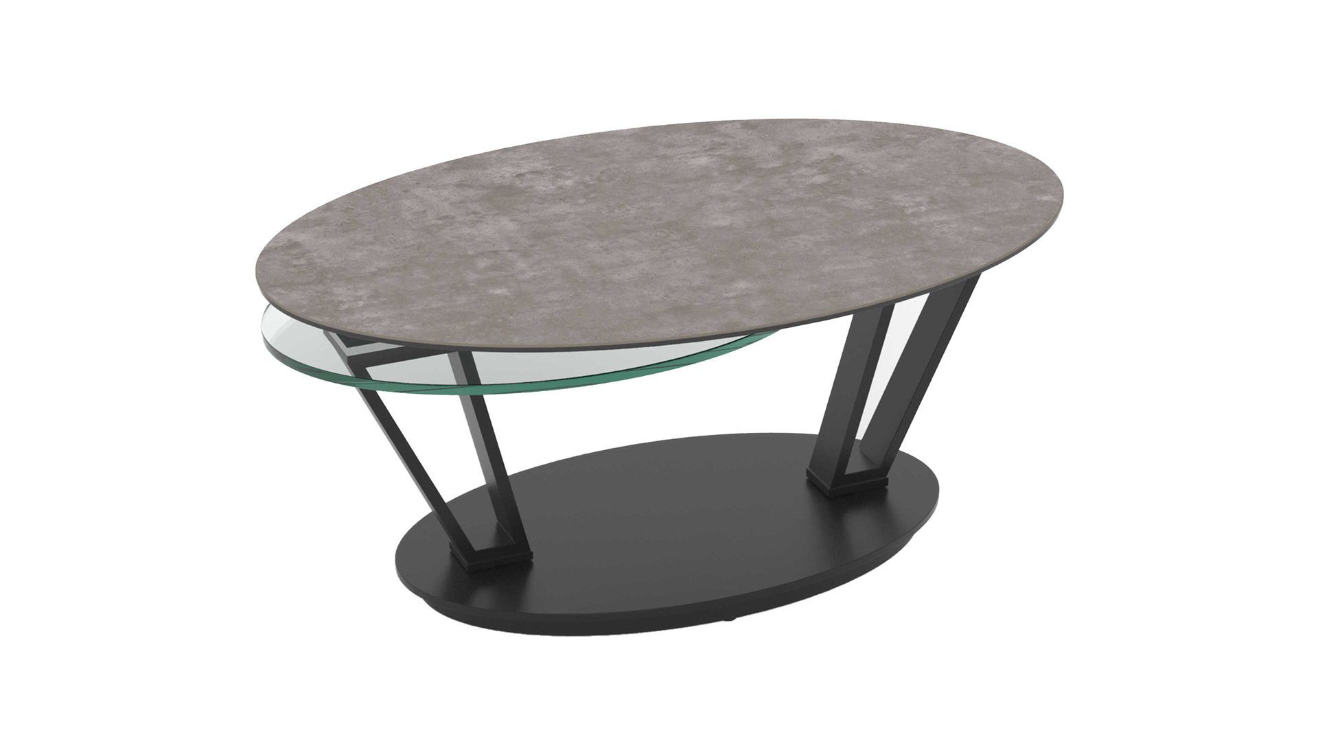 Der Couchtisch CT638AR aus der Interliving Couch Serie 6207 verbindet moderne Designmerkmale und spannende Funktionen zu einem ausgesprochen attraktiven Wohnzimmermöbel. Mit seiner markanten Optik ist der Sofatisch ein echter Hingucker. Das schwarz lackierte Stahlgestell harmoniert vorzüglich mit der edlen Keramikplatte im trendigen Farbton Zementgrau. Durch die spezielle Formensprache verkörpert der Tisch eine gewisse Extravaganz.