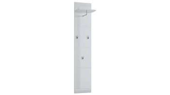 Verleihen Sie mit diesem Garderobenpaneel Ihrem Eingangsbereich eine einladende Atmosphäre und schaffen Sie gleichzeitig eine stilvolle Möglichkeit zur ordentlichen Kleideraufbewahrung. Die Wandgarderobe präsentiert sich mit einem Korpus aus MDF mit weißer Hochglanzoberfläche und auffällig schöner Rillenfräsung. Dabei bieten der Ablageboden, die Kleiderstange sowie drei Kleiderhaken ausreichend Platz für Ihre Kleidung. Jacken, Schals und Mäntel hängen Sie knitterfrei auf, während Sie Hüte und Mützen auf der oberen Ablagefläche des Dielenmöbels verstauen.