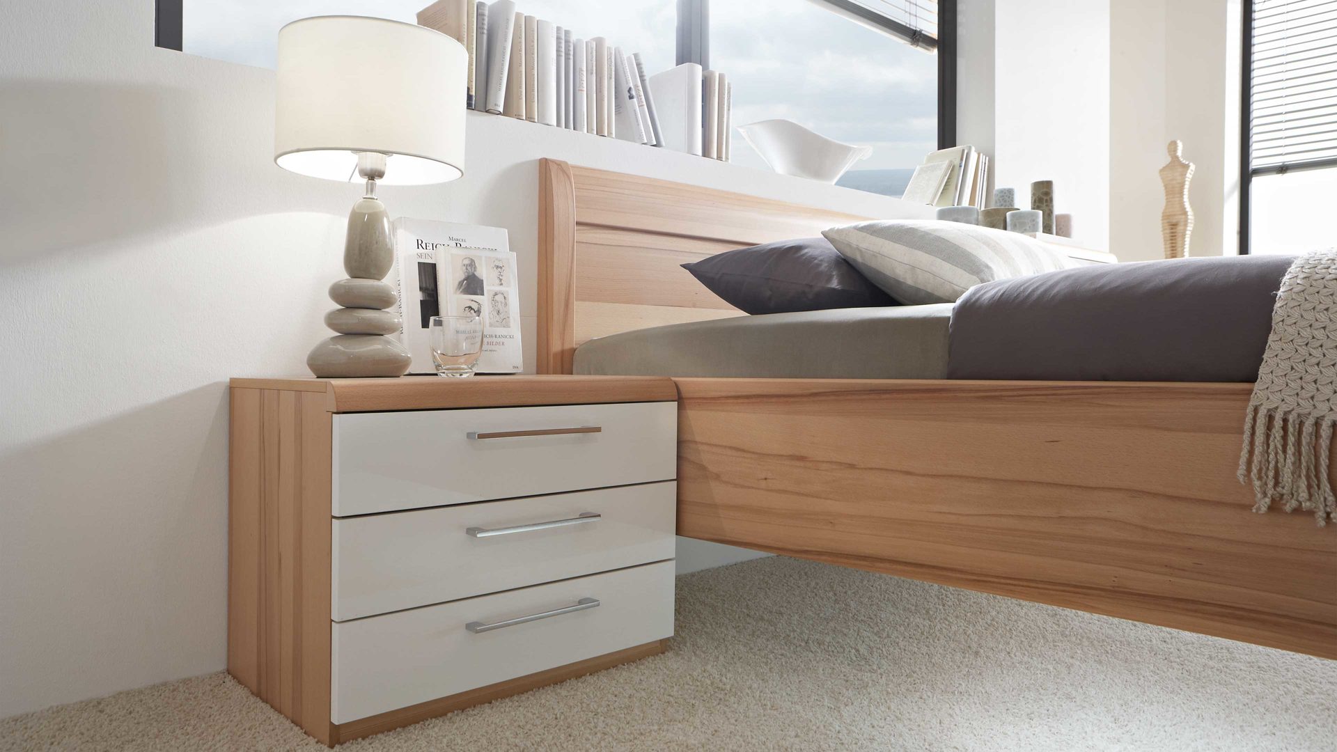 Dank des umfangreichen Typenprogramms lassen sich die Schlafzimmermöbel individuell an Ihre Wünsche und Bedürfnisse anpassen. Sie wählen zwischen fünf Frontausführungen sowie drei Griffvarianten. Überdies erhalten Sie den Schrank gegen Mehrpreis mit einer edlen Beleuchtung.