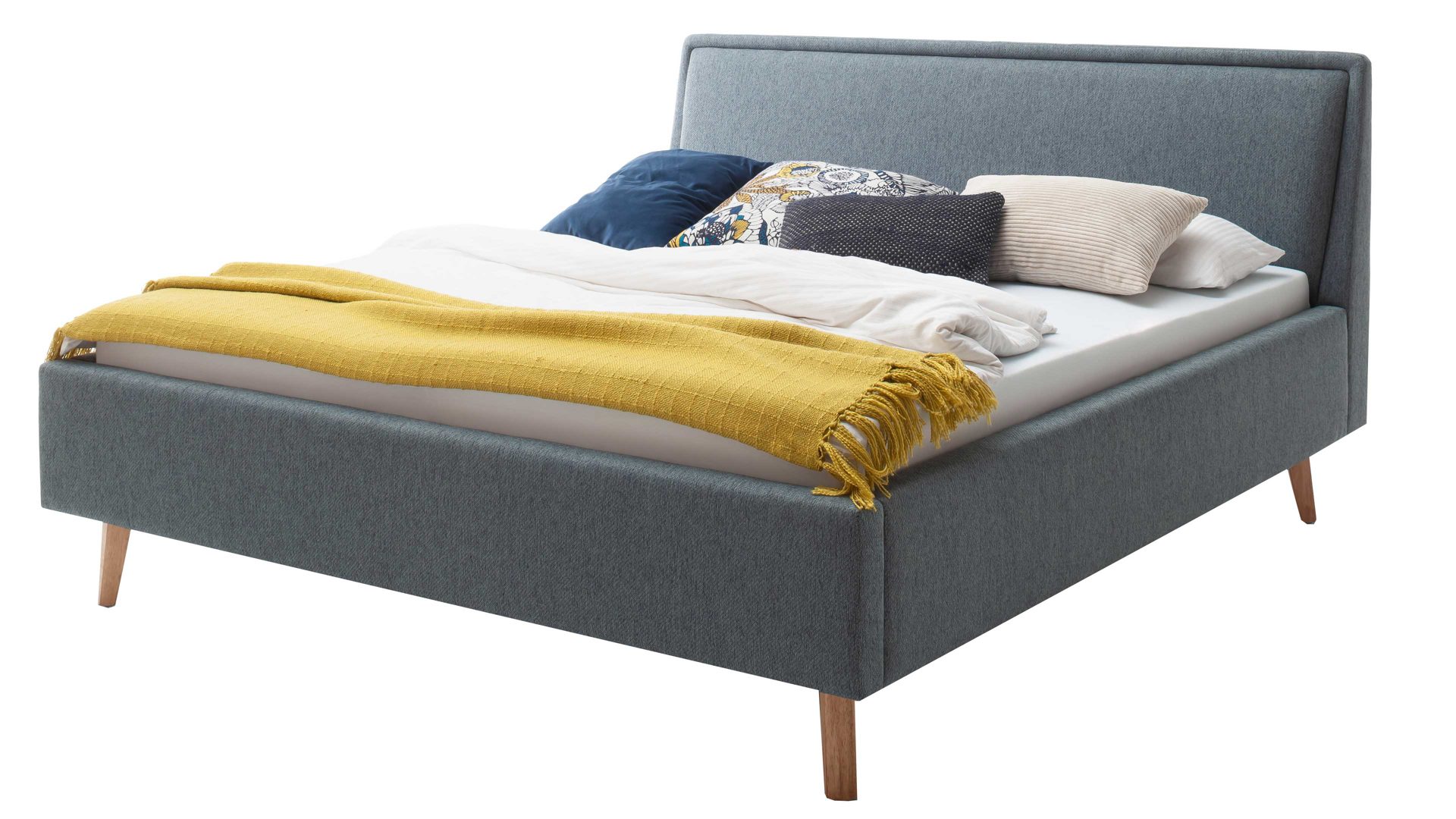 Das Polsterbettgestell Frieda mit Bettkasten verkörpert modernen Komfort. Mit dem oceanfarbenen Stoffbezug und den eichefarbenen Holzfüßen präsentiert es sich elegant und gemütlich designt. Die Bettseiten sind genauso wie das Polsterkopfteil glatt bezogen. Letzteres ist eine angenehm weiche Rückenlehne, wenn Sie abends im Bett vor dem Schlafen noch entspannt in Ihrem Buch lesen oder fernsehen möchten.