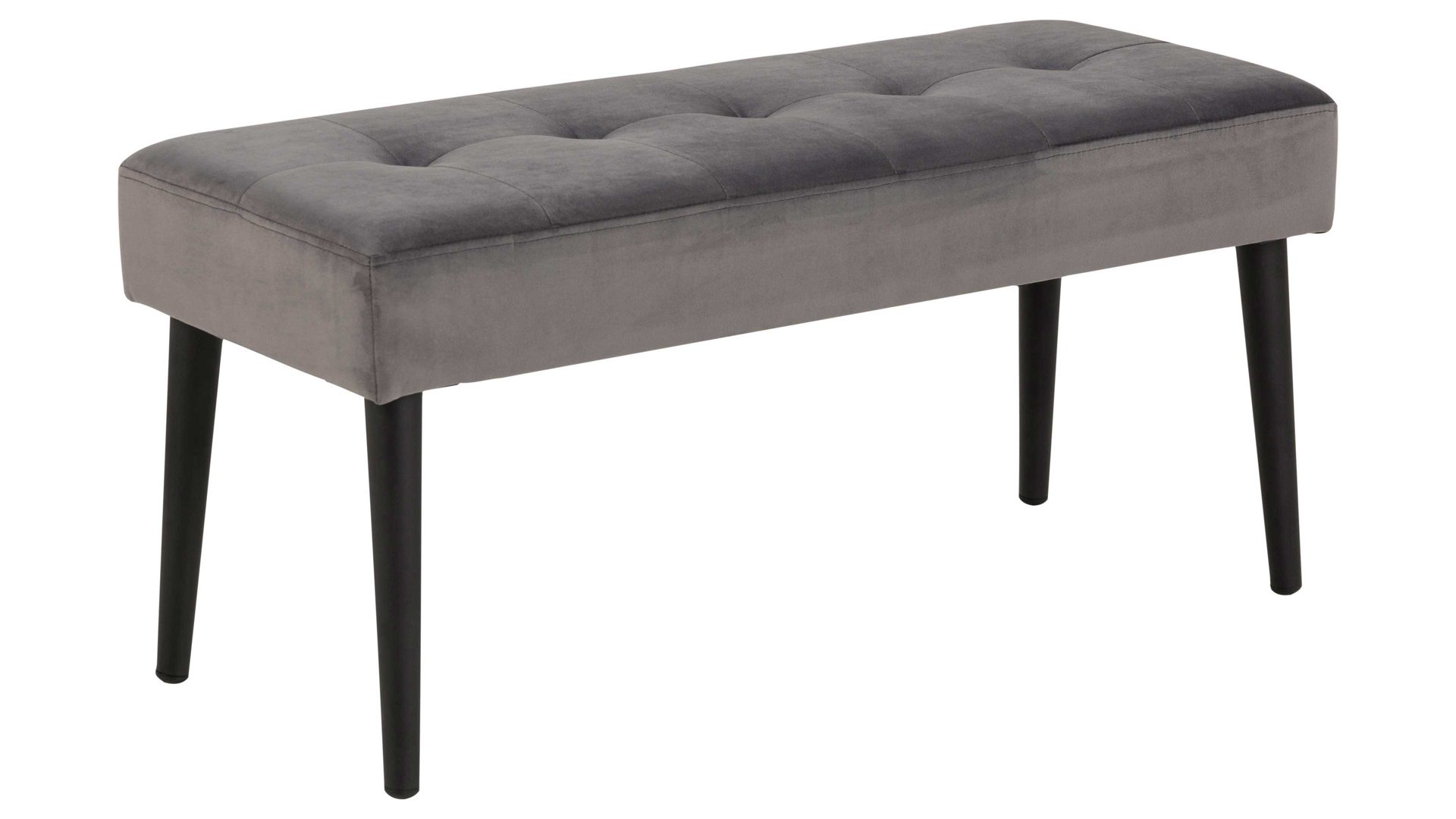 Die Polsterbank Glory begeistert mit ihrem edlen, modernen Design und bietet dazu hohen Komfort. Mattschwarze, rau pulverbeschichtete Metallfüße sorgen für die nötige Standfestigkeit. Das optische Highlight der Bank ist der klassisch-graue Samtbezug, der zum einen Extravaganz und zum anderen Gemütlichkeit ausstrahlt. Einen gelungenen Akzent setzt überdies die Rautenheftung der Sitzfläche.