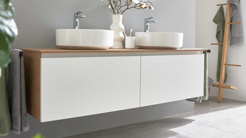 - Zwei Aufsatzwaschtische bieten viel Komfort im Alltag, ideal auch für Paare oder Familien.