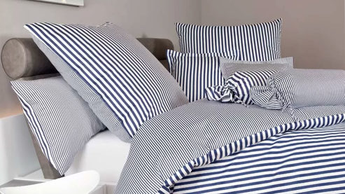 Eine klassisch-schöne Dunkelblau/Weiße Streifen-Bettwäsche im angesagten und gemütlichen Landhausstil finden Sie mit dieser hochwertigen Mako-Satin-Bettwäsche der Marke Janine. Das Modell modernclassic 3912 in der Größe ca. 135 x 200 cm (BxL) und einem Kissenbezug ca. 80 x 80 cm lässt Streifen-Liebhaber voll auf ihre Kosten kommen, denn die tolle Bettwäsche ist als Wendebettbezug konfektioniert, sodass zwischen breiten Streifen auf der einen und schmalen Streifen auf der anderen Seite gewechselt werden kann.