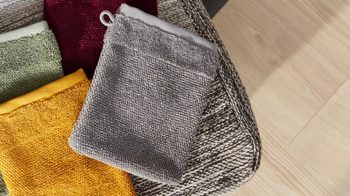 Besonders praktisch: Der Waschhandschuh ist in verschiedenen Farben bestellbar und lässt sich ideal mit den passenden Handtüchern und Badematten aus der Interliving Handtuch Serie 9108 kombinieren – für ein harmonisches und stilvolles Gesamtbild in Ihrem Badezimmer.
