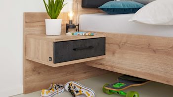 Auch praktisch überzeugt die Hänge-Nachtkonsole. In der Schublade mit Soft-Stop-Einzug für sanftes, geräuscharmes Schließen haben verschiedenste Gegenstände Platz, etwa Taschentücher und die aktuelle Lektüre. Auf dem Oberboden sind zum Beispiel eine Nachttischlampe und ein dekoratives Element sinn- und stilvoll.