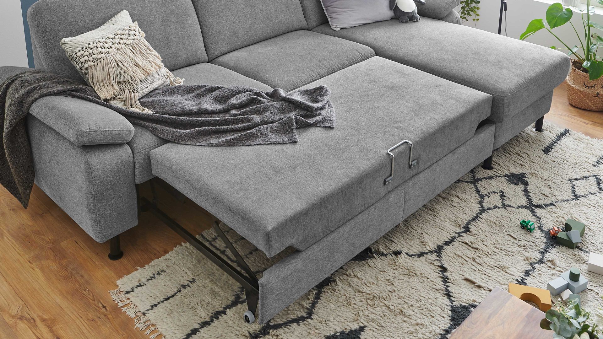 Diese Bettfunktion ist eine Mehrpreis-Funktion für die Type 2,5 EL aus dem Modulmaster Programm MM-ZE1129. Indem Sie den Sitz nach vorne ausziehen, erwirken Sie eine Liegefläche von ca. 123 x 291 cm (BxL), die serienmäßig mit Nesselstoff bezogen, gegen Mehrpreis aber auch im Originalstoff lieferbar ist. Als besonders praktisch erweist sich die Bettfunktion, wenn Gäste bei Ihnen übernachten.