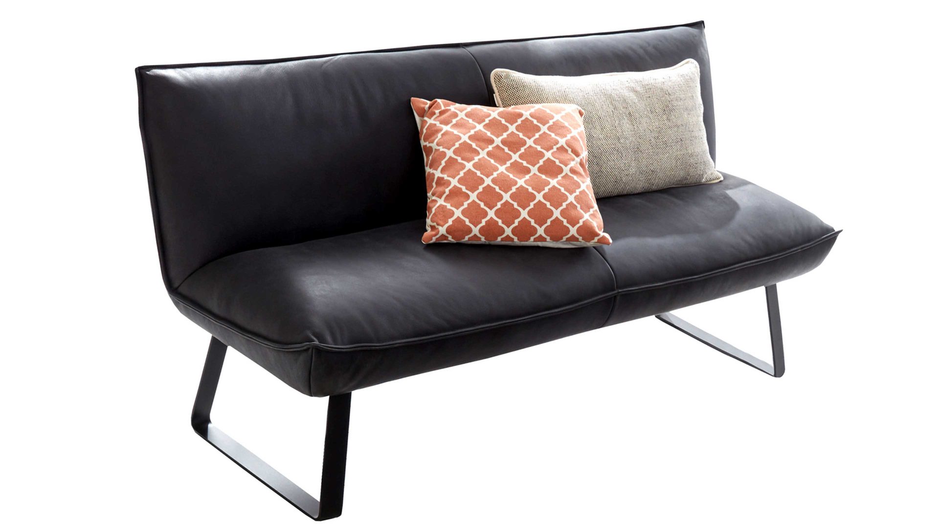 Als Basis fungiert ein mattschwarz pulverbeschichtetes Flachkufengestell mit Struktur. Die Sitz- und Rückenfläche der qualitativ hochwertigen Dinerbank sind mit dunklem Leder bezogen, das extravagante Tiefgründigkeit und jede Menge Gemütlichkeit ausstrahlt. Neben den optischen Höhepunkten bietet die Lederbank auch funktionale Highlights. Dank der legeren Schaumpolsterung mit extra weicher, softer Oberfläche genießen Sie besonders hohen Sitzkomfort.