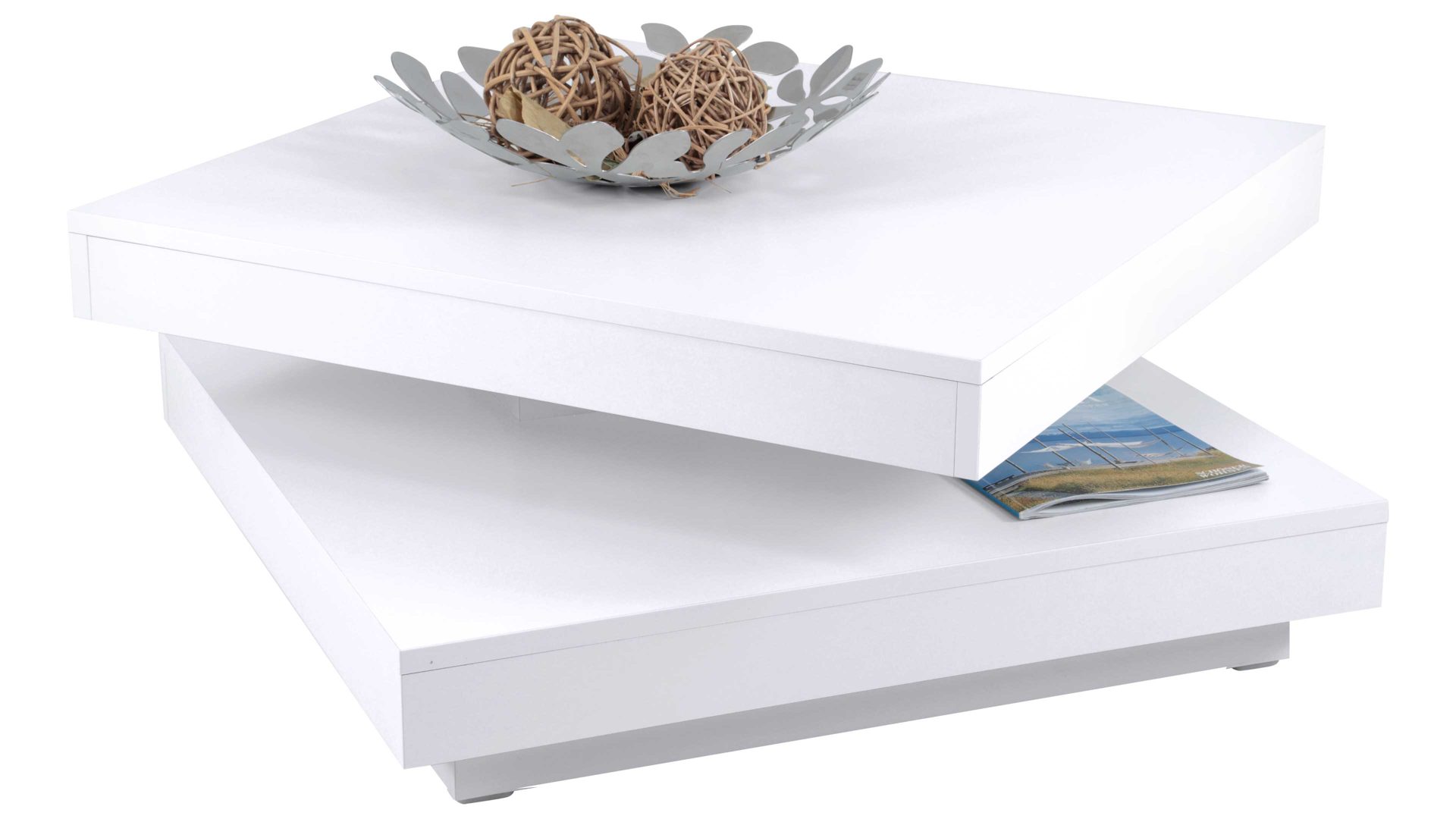 Das absolute Highlight des Funktionstisches bildet die Möglichkeit, die Tischplatte nach Belieben um 360 Grad zu drehen. Je nach Winkel der oberen Platte geben Sie dem Tisch eine andere Formensprache. Praktisch ist zudem der Ablageboden, auf dem Sie etwa Fernbedienungen und TV-Magazine schlicht und griffbereit unterbringen können. Dadurch bleibt auf der Tischplatte mehr Platz für dekorative Elemente wie Kerzen und Vasen.