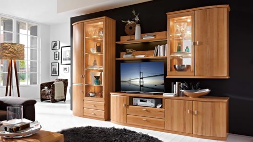 Die Vermont Wohnkombination aus massiver Kernbuche überzeugt durch ihre natürliche, warme Ausstrahlung, die Ihr Wohnzimmer mit einer freundlich-einladenden Atmosphäre bereichert. Für eine stimmig-moderne Abrundung sorgen die alufarbenen Griffe mit Holzauflage.