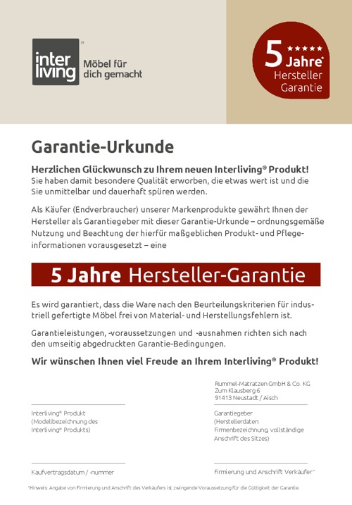Höchste Qualität – produziert in Deutschland: Die Interliving Matratze Medikontur 1914 wird unter strengen Qualitätsstandards in Deutschland gefertigt und überzeugt durch Langlebigkeit, Komfort und Stabilität. Mit der 5 Jahre Herstellergarantie investierst du in nachhaltigen Schlafkomfort und dauerhaftes Wohlbefinden.