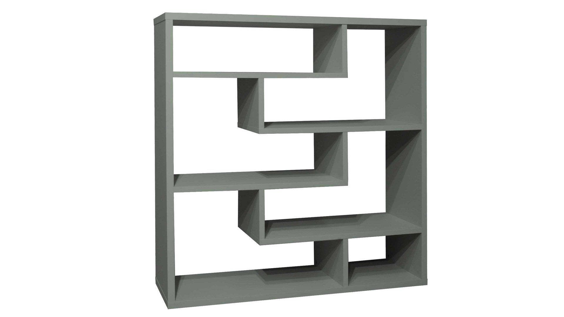 Die piniengrünen Mattlackoberflächen und die verspielte, aber dennoch harmonische Anordnung der Böden verleihen dem Raumteiler eine sehr moderne und elegante Ausstrahlung. Er bietet Ihnen insgesamt sechs Fächer, in denen Sie etwa Bücher und Deko aufbewahren können. Doch auch Aktenordner sind hier gut aufgehoben. Die Maße des Regals belaufen sich auf ca. 130 x 134 x 40 cm (BxHxT).
