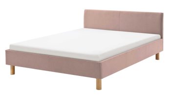 Mit dem edlen altrosafarbenen Stoffbezug und den eichefarbenen Holzfüßen strahlt das Polsterbettgestell Lena feminine Eleganz mit einer Prise Natürlichkeit aus. Sowohl die Bettseiten als auch das bequeme Polsterkopfteil sind glatt bezogen, was den gemütlichen Charakter des Bettes unterstreicht. Das angenehm weiche Kopfteil ist beispielsweise beim Lesen oder Fernsehen als praktische Rückenlehne nutzbar.