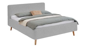 Das Polsterbettgestell Mattis begeistert durch die elegante Optik sowie die hervorragende Material- und Verarbeitungsqualität. Es kombiniert einen grauen Boucle-Bezug mit eichefarbenen Holzfüßen. Sowohl die Bettseiten als auch das Polsterkopfteil sind glatt bezogen. Letzteres lädt Sie ein, sich anzulehnen, wenn Sie abends im Bett vor dem Schlafen noch fernsehen oder in einem Buch lesen.