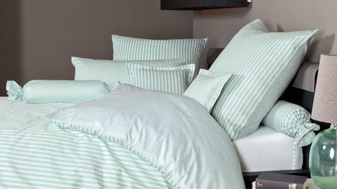 Eine klassisch-schöne Jadegrün/Weiße Streifen-Bettwäsche im angesagten und gemütlichen Landhausstil finden Sie mit dieser hochwertigen Mako-Satin-Bettwäsche der Marke Janine. Das Modell modernclassic 3912 in der Größe ca. 240 x 220 cm (BxL) und zwei Kissenbezügen á ca. 80 x 80 cm lässt Streifen-Liebhaber voll auf ihre Kosten kommen, denn die tolle Bettwäsche ist als Wendebettbezug konfektioniert, sodass zwischen breiten Streifen auf der einen und schmalen Streifen auf der anderen Seite gewechselt werden kann.